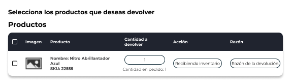 Selecciona los productos que deseas devolver.