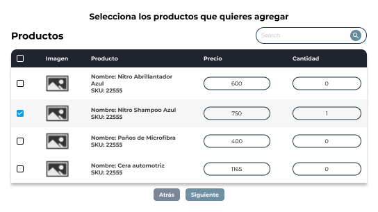 Si seleccionas la opción Cambio, podrás elegir los nuevos productos que se enviarán al cliente en reemplazo del original.