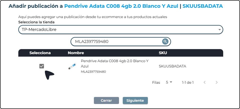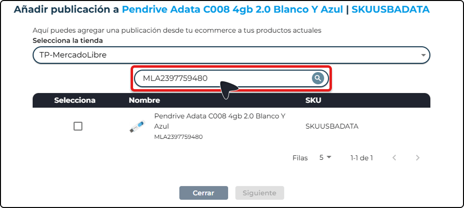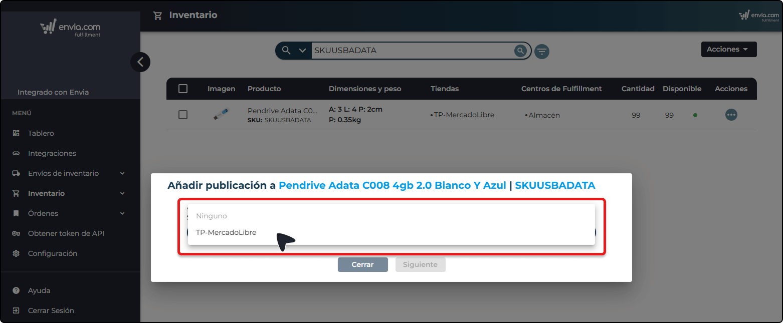 Añade las publicaciones correspondientes a cada artículo para despachar sin problemas las órdenes del e-commerce (opción más recomendable y con funcionalidad completa en la plataforma de fulfillment).